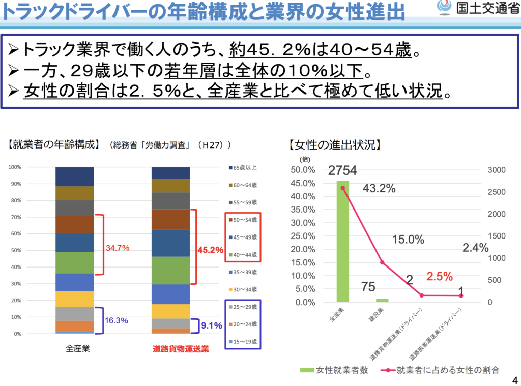 日本の物流領域では、深刻な人手不足と高齢化が同時進行しております。内閣府「令和7年版高齢社会白書」によれば、2024年時点で日本の高齢化率は29.3%に達し、総人口の約3人に1人が65歳以上となっています。特に物流分野では、ドライバーや倉庫作業員など現場を支える人材に高齢層が多く、人材のうち、約45.2%は40〜54歳といわれています。一方で、若年層の新規参入は伸び悩んでおり、労働力の構造的な減少が業界全体の持続性を脅かしています。