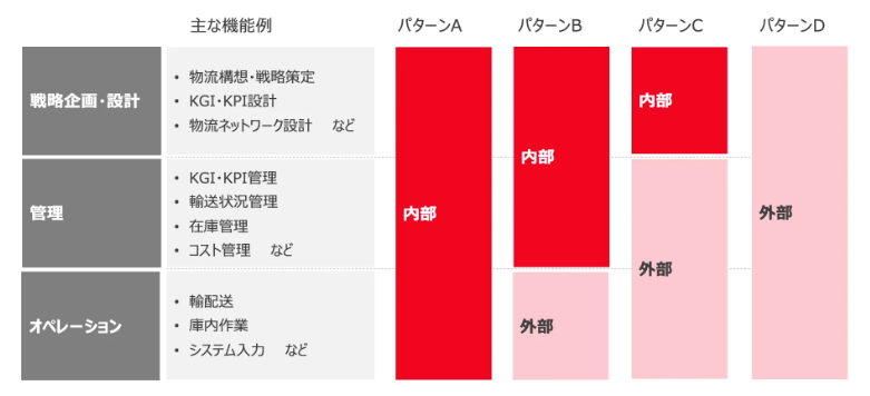 こうしたリスクを回避するため、荷主企業は自社で物流を管理・可視化できる体制を整え始めています。つまり、単なる委託者ではなく、自社の物流パフォーマンスを自らモニタリング・分析し、改善を主導する立場へと変わりつつあるのです。(以下の図におけるパターンCからパターンBへの変化)