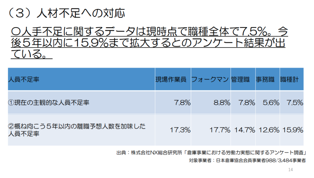 - 倉庫業の人員不足率は15.9%まで膨らむと予想されている