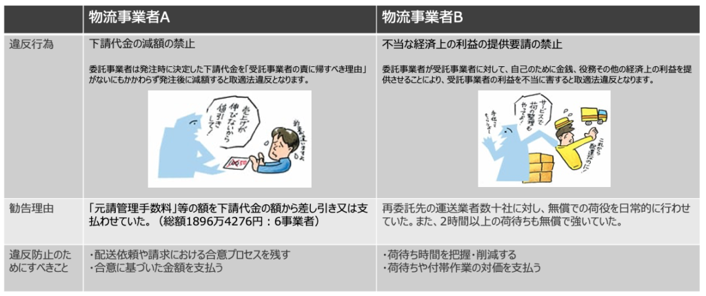 2025年12月、物流事業者2社が取引適正化推進法(取適法)違反により、公正取引委員会から勧告処分を受け、社名が公表されました。