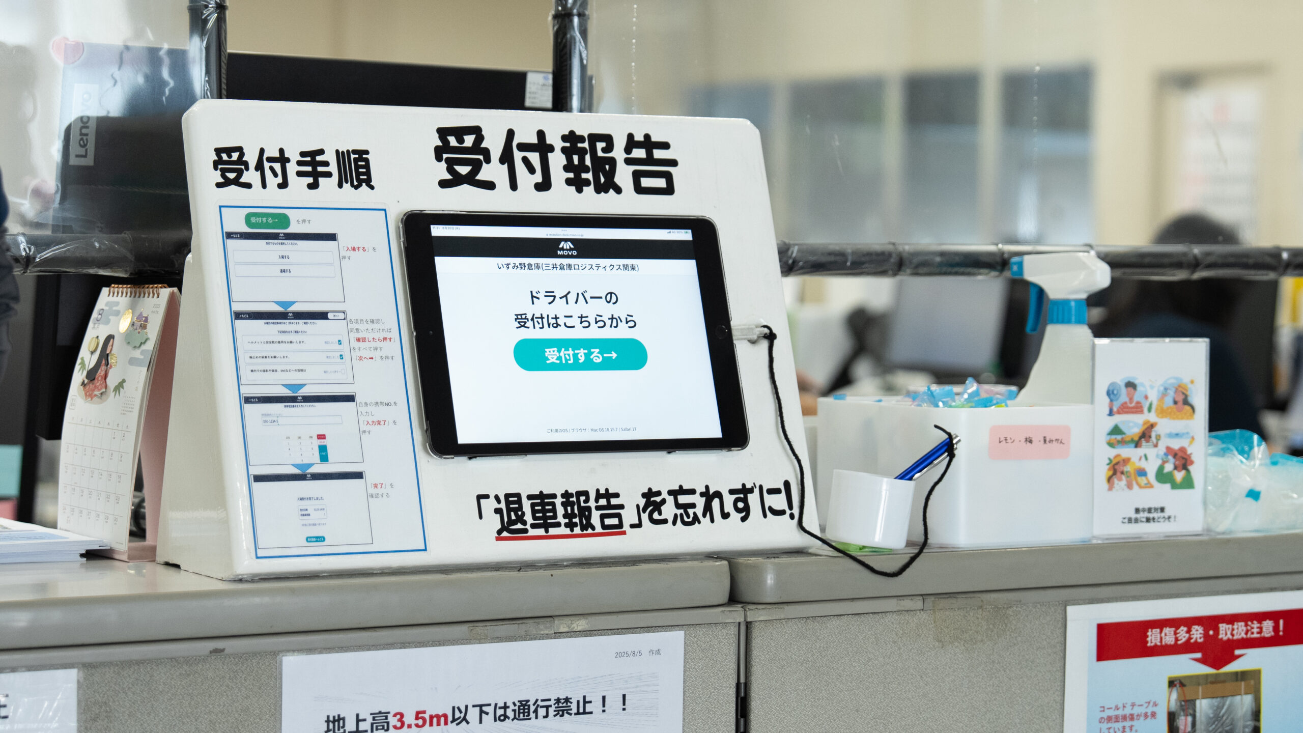 手塚様: MOVO VistaとMOVO Berthの連携により、運送会社が予約する運用も比較的スムーズに定着し、MOVO Berthを事業所全体に展開することができました。幹線便と直送便で運用が統一されたので、ドライバーさんの混乱もなくなりました。これまで、ドライバーさんには入場時と積み込み時の2回受付をしてもらっていましたが、今はMOVO Berthのタブレットの受付のみです。