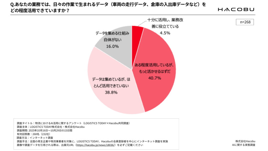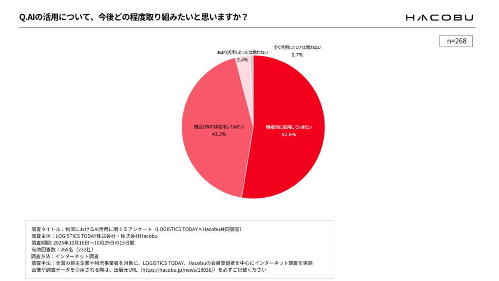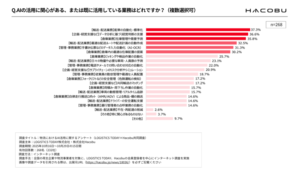 Hacobuリポート『物流×AI活用に関するLOGISTICS TODAY×Hacobu共同調査(全16頁)』の全リポート内容はこちら>>https://hacobu.jp/form/document-wp-ai-utilization-survey-2025/