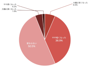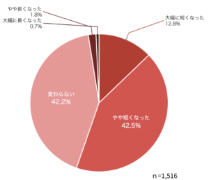 Q. 直近1年間で、拘束時間はどのように変化したと感じますか?