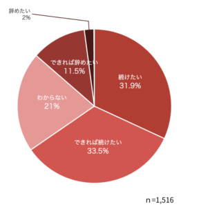 「続けたい(31.9%)」「できれば続けたい(33.5%)」が6割以上を占め、賃金面の課題が浮き彫りとなる一方で、職業としてのドライバーへの定着意向の高さが示されました。