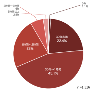 荷待ちについて、最多は「30分〜1時間(45.1%)」で、次が「1時間〜2時間(23.0%)」でした。一方で「2〜3時間(6.0%)」、「3時間以上(2.5%)」と、現場によっては依然として深刻な荷待ちが残っていることも浮き彫りになりました。